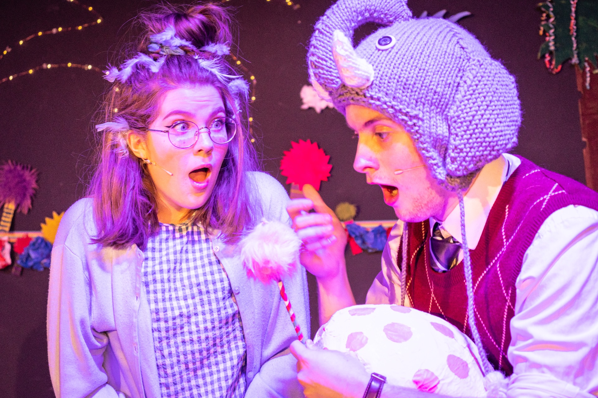 Hosted by our MC, The Cat in the Hat, we follow Horton through the Jungle of Nool as he discovers the world of Whoville, finds a friend in JoJo, and promises to protect the Whos from other jungle creatures that threaten their existence. With light-hearted and catchy songs, Seussical explores themes of friendship, loyalty, and kindness.